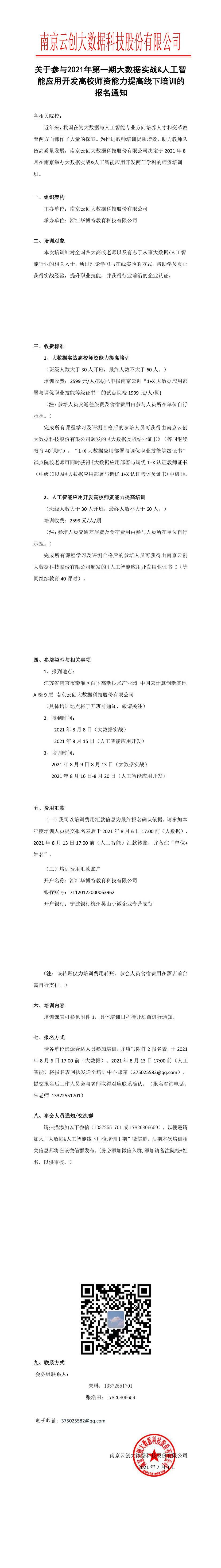 關于參與2021年第一期大數據實戰&人工智能應用開發高校師資能力提高線下培訓的報名通知