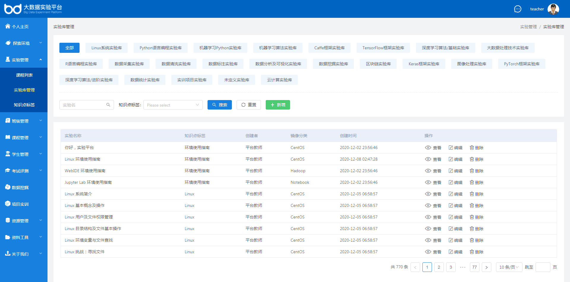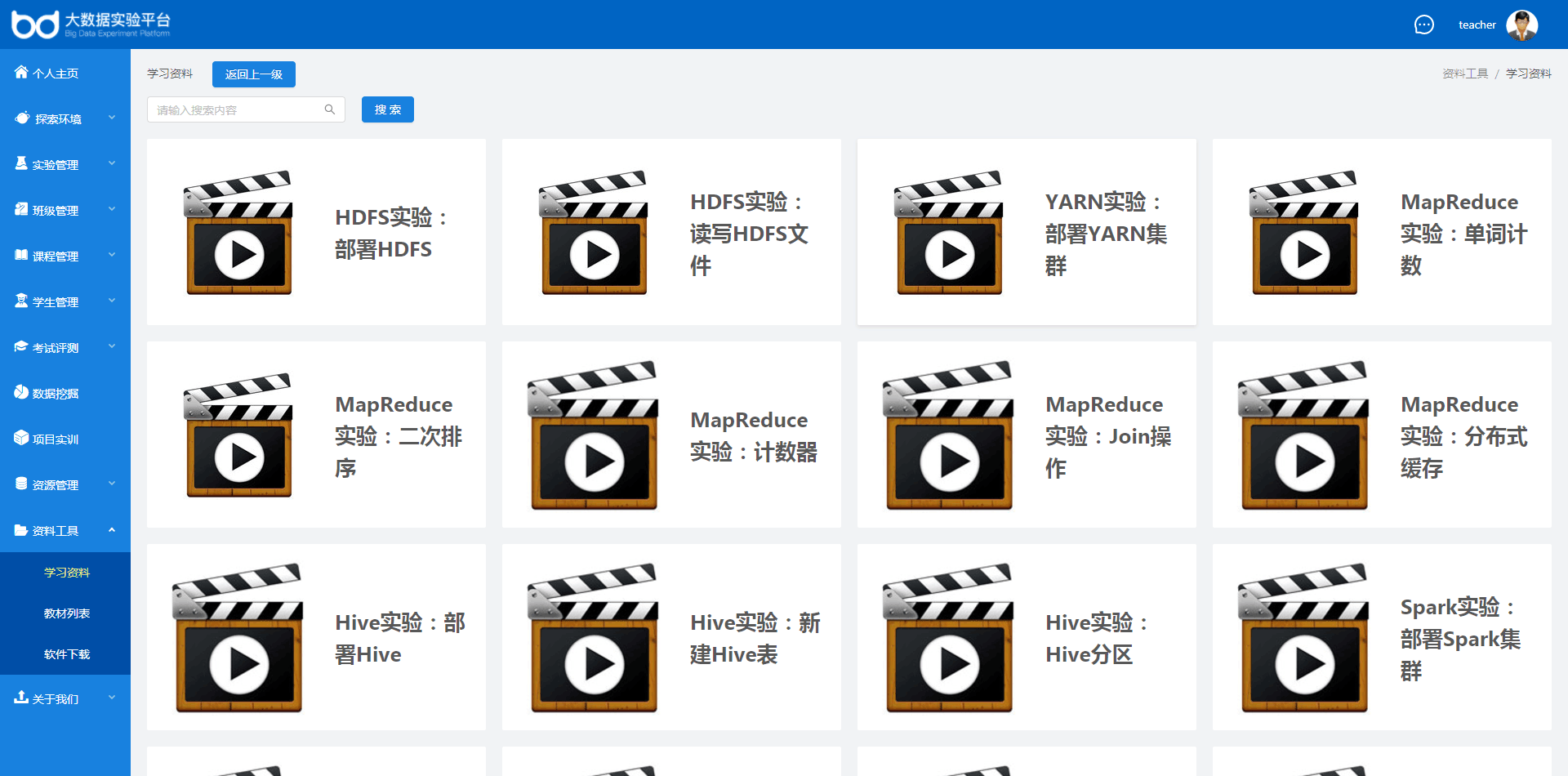 針對全國大數據專業人才的培養,云創BDRack大數據實驗平臺基于Docker容器技術,一鍵創建實驗環境,支持多人同時在線,實驗相互隔離、互不干擾,集成考試系統(包括試題庫)與數據可視化應用,同步提供詳實的實驗手冊、實驗視頻、教學課件等資源,更好地滿足課程設計、課程上機實驗、實習實訓、科研訓練等需求。