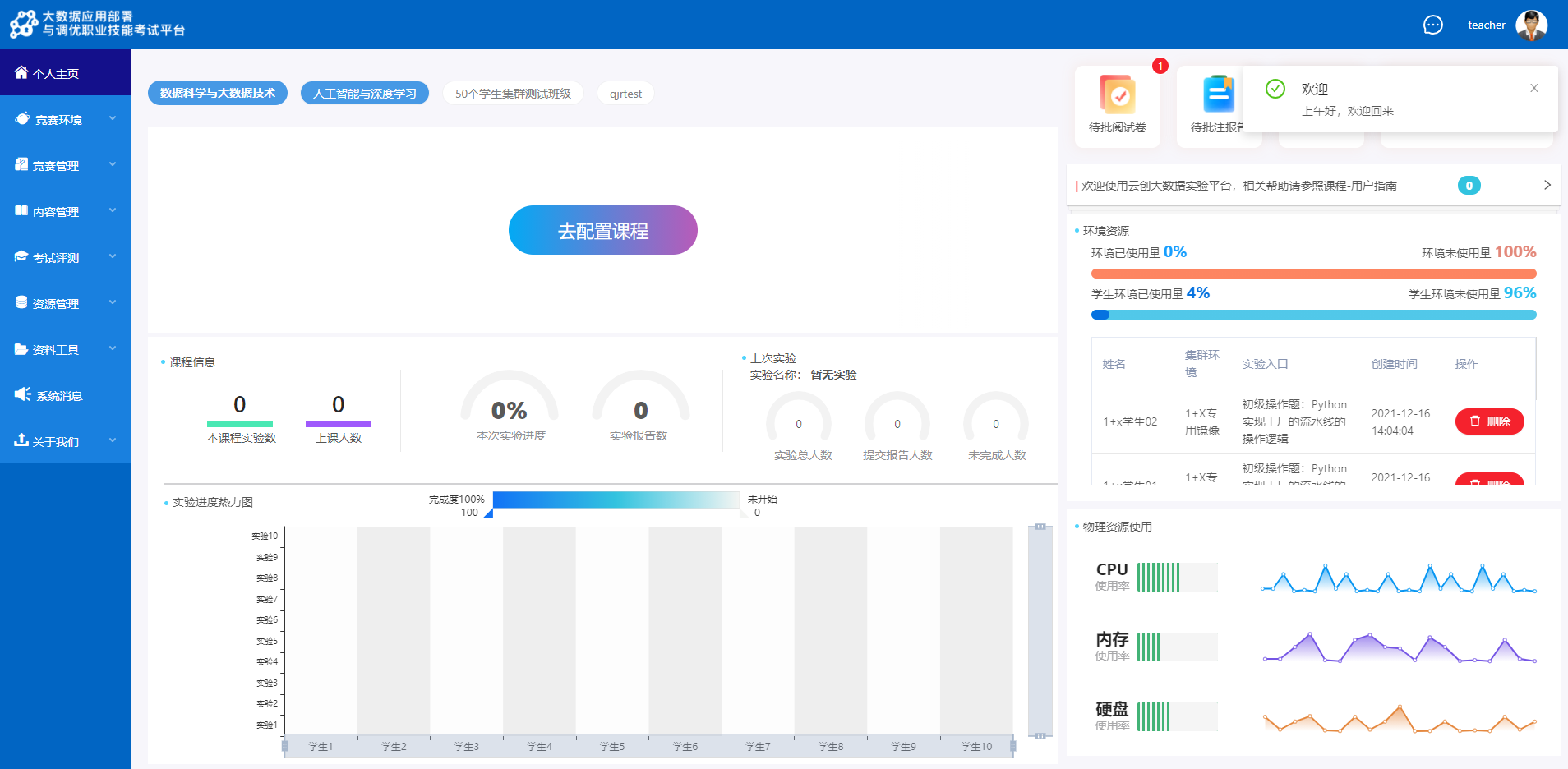 值得一提的是,除支撐考試舉辦以外,云創(chuàng)大數(shù)據(jù)還為兩場考試提供了“大數(shù)據(jù)應(yīng)用部署與調(diào)優(yōu)職業(yè)技能考試平臺”,使得比賽有條不紊地進(jìn)行。平臺性能穩(wěn)定、功能全面,兼顧理論知識與實踐技能考試功能,也支持評卷和成績導(dǎo)出等工作,考務(wù)人員對此表示非常贊賞。