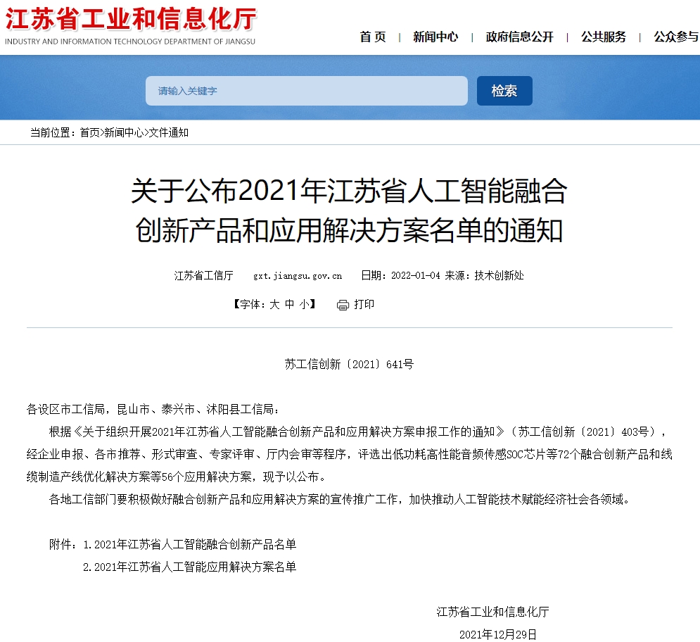 根據(jù)《關(guān)于組織開(kāi)展2021年江蘇省人工智能融合創(chuàng)新產(chǎn)品和應(yīng)用解決方案申報(bào)工作的通知》(蘇工信創(chuàng)新〔2021〕403號(hào)),經(jīng)企業(yè)申報(bào)、各市推薦、形式審查、專家評(píng)審、廳內(nèi)會(huì)審等程序,近日,江蘇省工業(yè)和信息化廳組織評(píng)選出2021年江蘇省人工智能融合創(chuàng)新產(chǎn)品和應(yīng)用解決方案名單。其中,南京云創(chuàng)大數(shù)據(jù)科技股份有限公司(簡(jiǎn)稱“云創(chuàng)大數(shù)據(jù)”)人工智能產(chǎn)品——“面向智慧城市的視頻智能監(jiān)控系統(tǒng)”榜上有名,成功膺選“江蘇省人工智能應(yīng)用解決方案名單”。