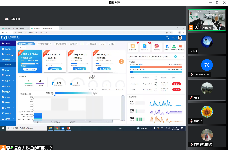 接著,云創大數據工程師向大家介紹并演示了云創開發的大數據實驗平臺與人工智能實驗平臺,并就兩大實驗平臺的特性、功能、優勢、操作、服務,以及不同之處等,向大家進行了詳細地分享。