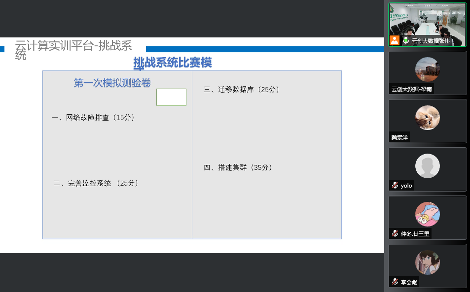 5月24日,云創(chuàng)大數(shù)據(jù)在騰訊會(huì)議線上舉辦了“全國(guó)職業(yè)技能大賽云計(jì)算賽項(xiàng)實(shí)戰(zhàn)及詳解”活動(dòng),120多位來自全國(guó)技師類院校的師生們參加了本次活動(dòng)。活動(dòng)過程中,云創(chuàng)大數(shù)據(jù)對(duì)全國(guó)職業(yè)技能大賽云計(jì)算賽項(xiàng)進(jìn)行了詳細(xì)介紹,并手把手帶50位選手進(jìn)行云計(jì)算實(shí)戰(zhàn)。