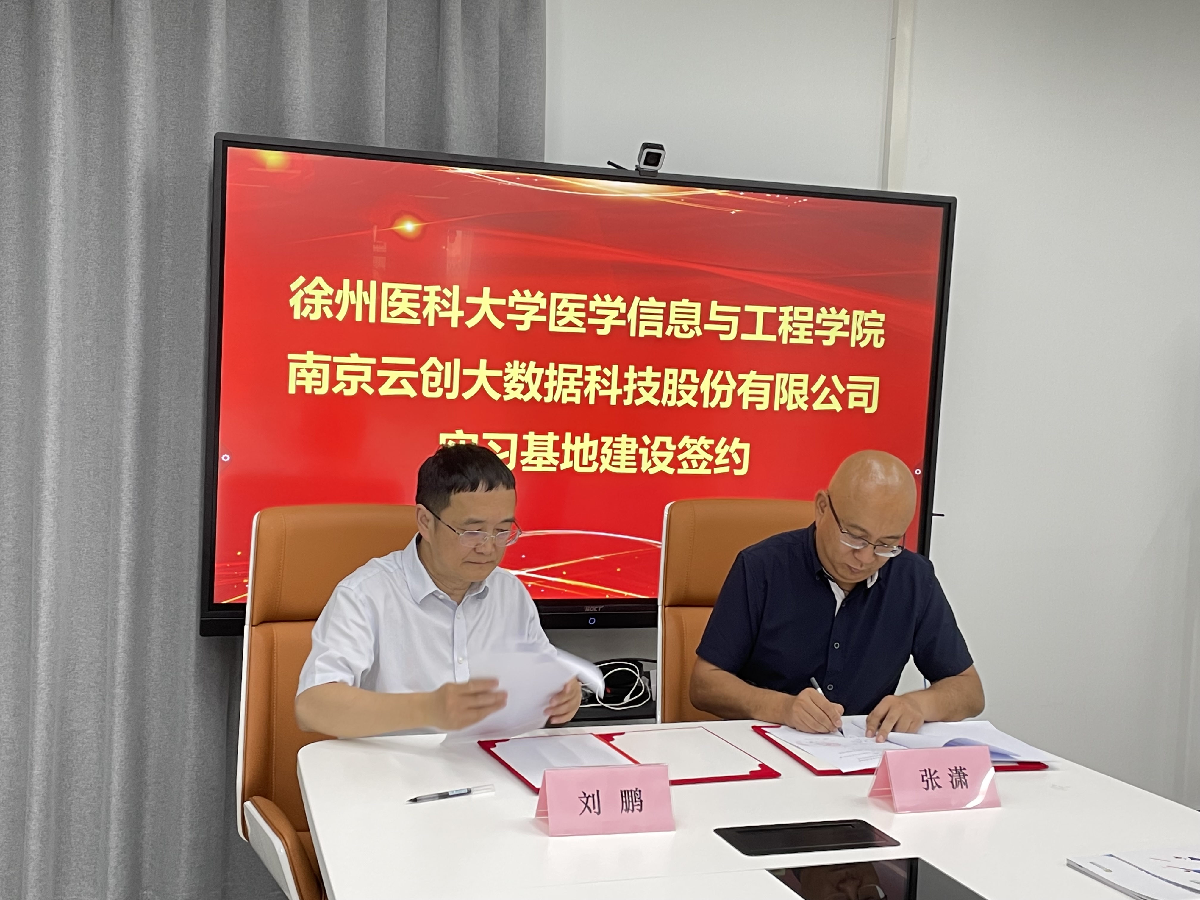 6月24日,南京云創(chuàng)大數(shù)據(jù)科技股份有限公司(簡稱:“云創(chuàng)大數(shù)據(jù)”)與徐州醫(yī)科大學(xué)醫(yī)學(xué)信息與工程學(xué)院舉行實(shí)習(xí)基地建設(shè)簽約儀式。徐州醫(yī)科大學(xué)醫(yī)學(xué)信息與工程學(xué)院張瀟院長、學(xué)院學(xué)位委員會(huì)主席王阿明、張姝副書記、吳響副院長、計(jì)算機(jī)科學(xué)與技術(shù)專業(yè)負(fù)責(zé)人朱紅、醫(yī)學(xué)信息工程專業(yè)教師吳川,以及云創(chuàng)大數(shù)據(jù)總裁劉鵬教授、張偉總監(jiān)共同出席了簽約儀式。