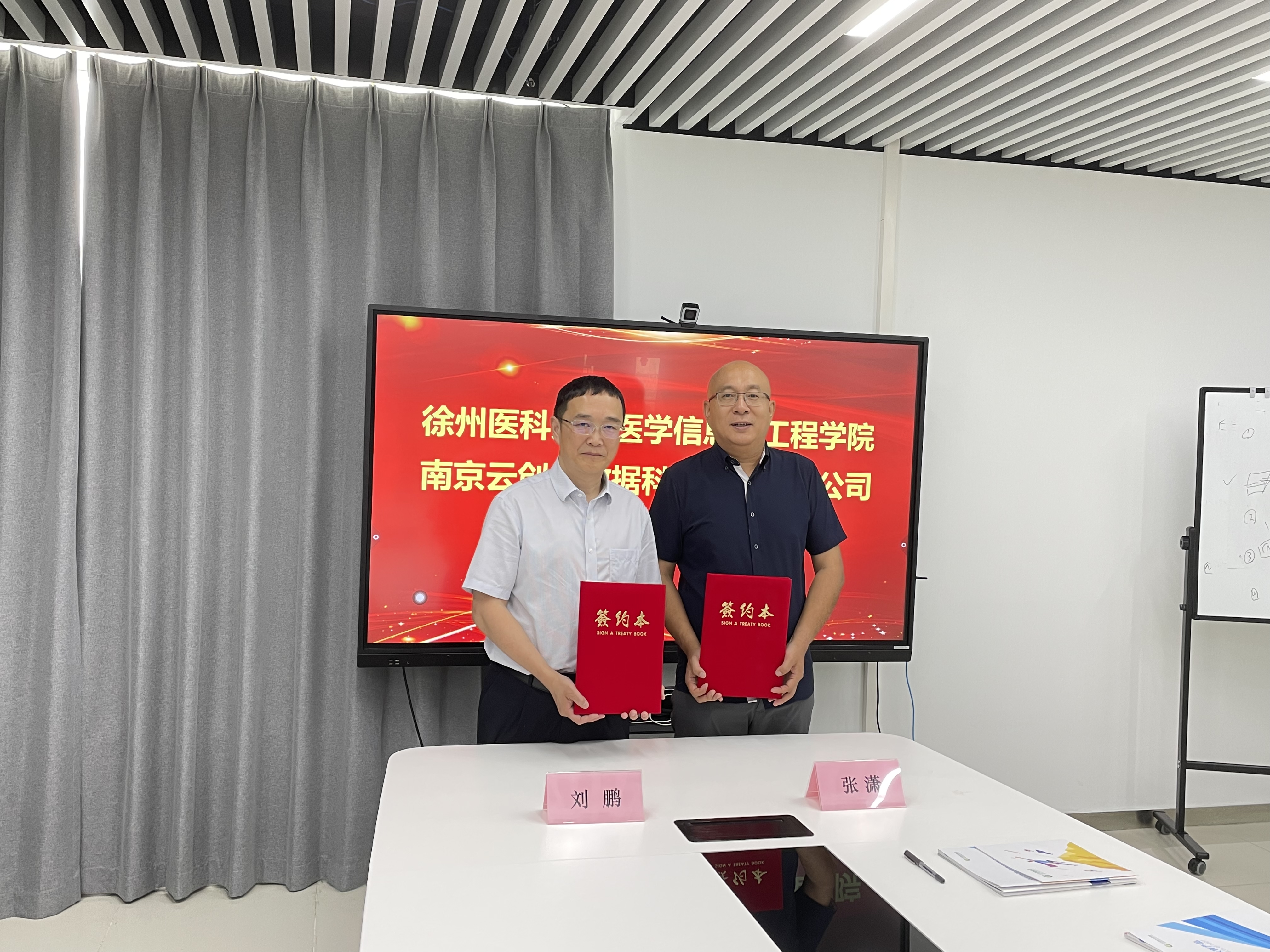 正式簽約環(huán)節(jié),劉鵬教授和張瀟院長代表雙方在簽約本進(jìn)行簽字確認(rèn)。根據(jù)協(xié)議約定,云創(chuàng)大數(shù)據(jù)與徐州醫(yī)科大學(xué)醫(yī)學(xué)信息與工程學(xué)院秉承“互相尊重、團(tuán)結(jié)協(xié)作、互惠互利、共同提高”的原則建設(shè)實(shí)習(xí)基地,以此促進(jìn)學(xué)院各專業(yè)教育事業(yè)發(fā)展,提高醫(yī)學(xué)信息工程、物聯(lián)網(wǎng)工程、計(jì)算機(jī)科學(xué)與技術(shù)專業(yè)實(shí)踐教學(xué)質(zhì)量,推動(dòng)企、醫(yī)、教、研全面協(xié)調(diào)發(fā)展,從而培養(yǎng)更多優(yōu)秀的高級(jí)醫(yī)學(xué)工程技術(shù)人才。