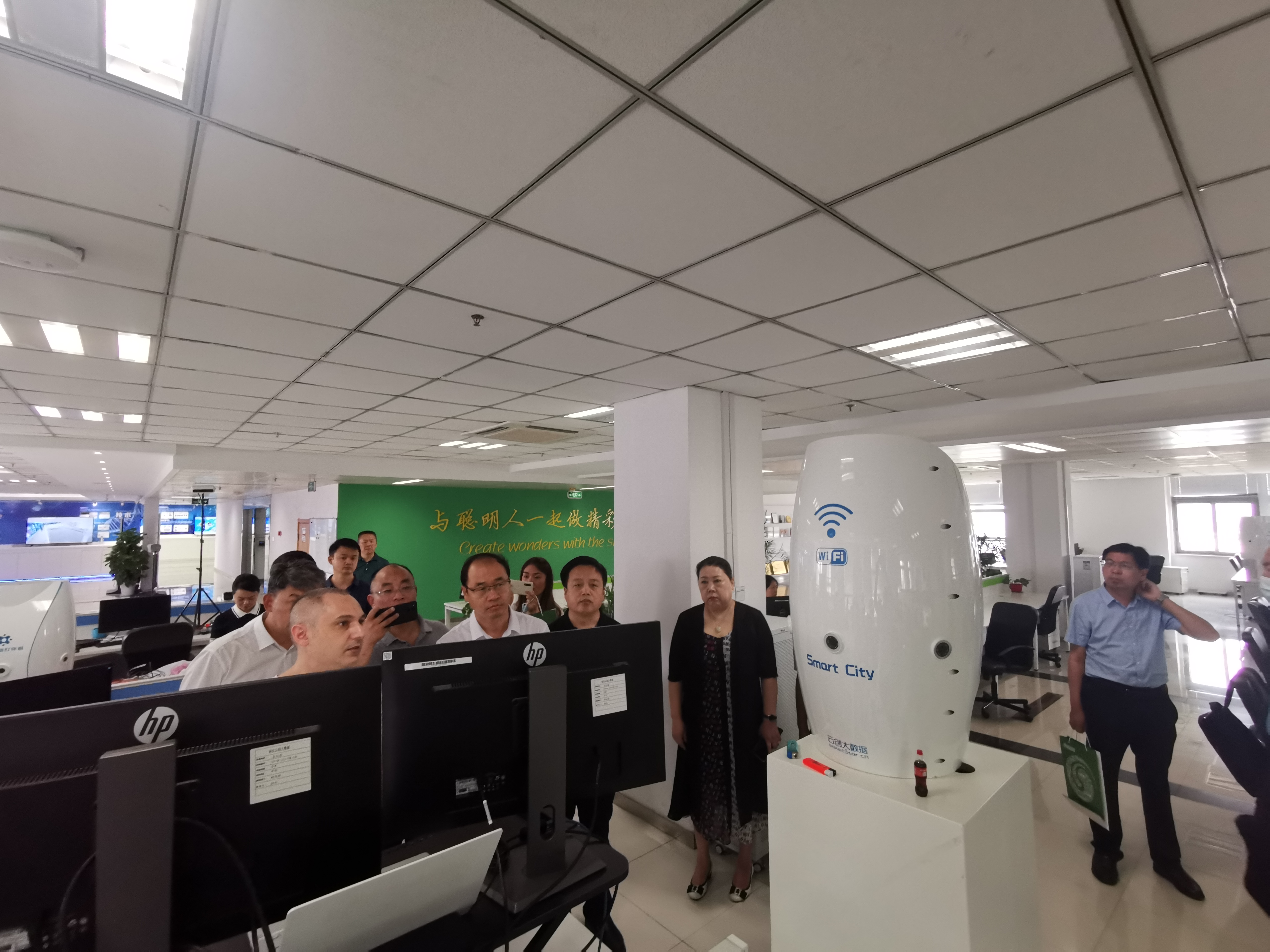 本次到訪,來賓重點對云創大數據在政府、公安等領域的產品應用和成功案例進行了了解。具體而言,來賓詳細了解了云創大數據的主營業務、榮譽資質、創新技術等,對云創建立了立體深入的認識。此外,在劉鵬教授的引導下,來賓還參觀了云創的榮譽資質展區、大數據運營中心、人工智能研究院、尖端工業智能展區等,云創創新創造實力和穩健發展勢頭給來賓留下了深刻印象。