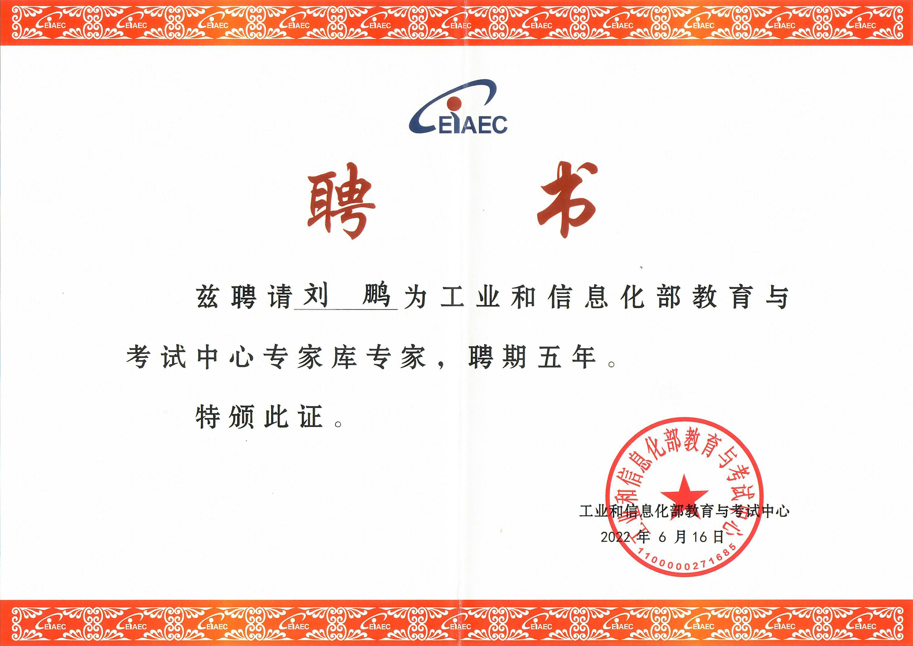 受聘為工信部教育與考試中心專家庫專家后,劉鵬教授將與專家庫其他專家一道攜手努力,全力推進工信部教育與考試中心相關工作,為行業發展不斷助力。