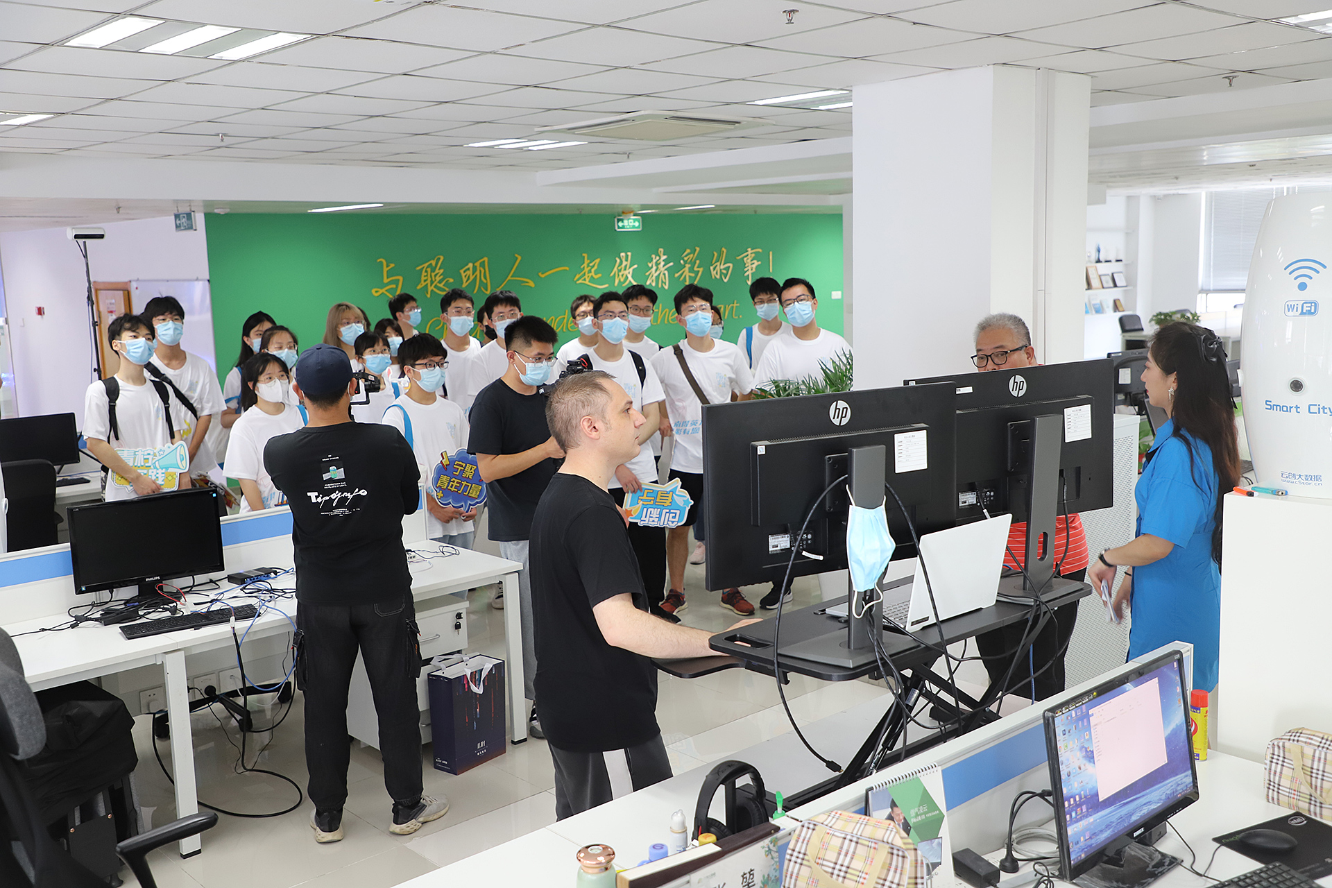 7月28日,“青檸實踐一一寧聚青春英才直通車”開進云創大數據,20多名大學生開啟了一段充滿科技與趣味的云創之旅。云創大數據外聯負責人沈大為先生帶同學們實地參觀,并與同學們互動交流。